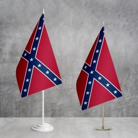 Прапор Конфедератів - КША - Конфедеративних штатів Америки (Бойовий) часто відомий як прапор Конфедерації, має кілька різних версій. Найвідоміший з них — так званий "Південний хрест", що складається з червоного полотнища з синім Андріївським хрестом, на якому розташовані білі зірки. Цей прапор символізував Конфедерацію під час Громадянської війни в США (1861-1865) і досі є суперечливим символом через його історичні асоціації. Прапор відображає прагнення штатів до незалежності та самовизначення.